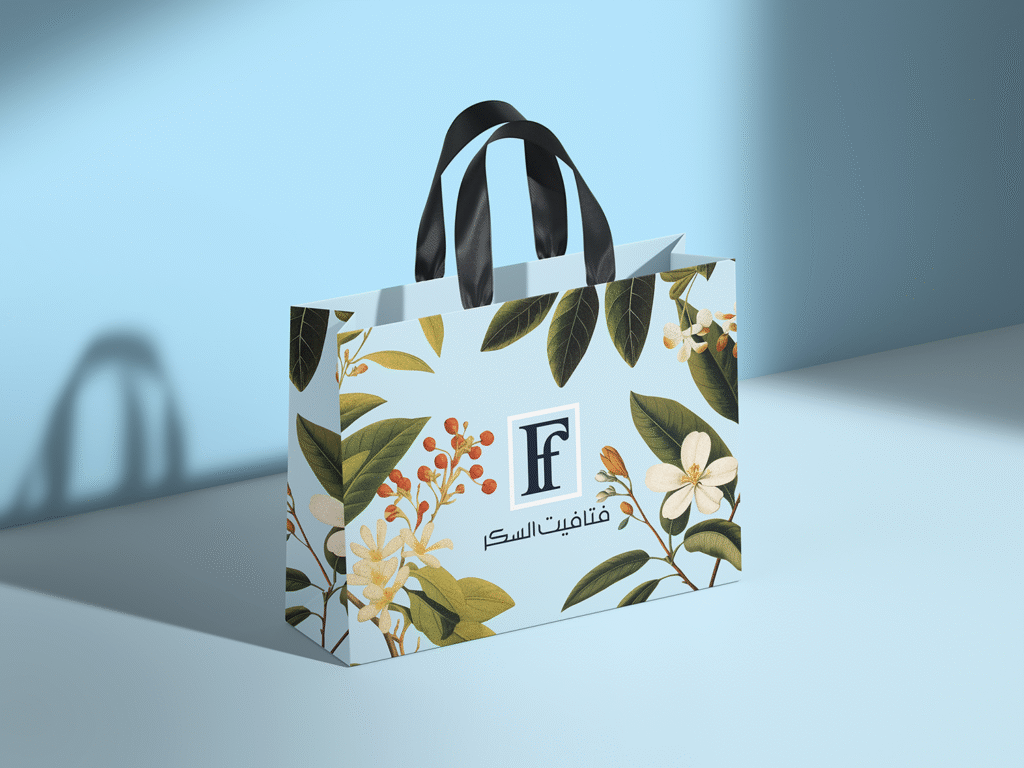 1. أكياس مطبوعة بنقوش زهرية ناعمة مستوحاة من الطبيعة، تعكس إحساس الانتعاش والنضج، وتُضيف لمسة فنية تليق بالهدايا والمناسبات الخاصة.