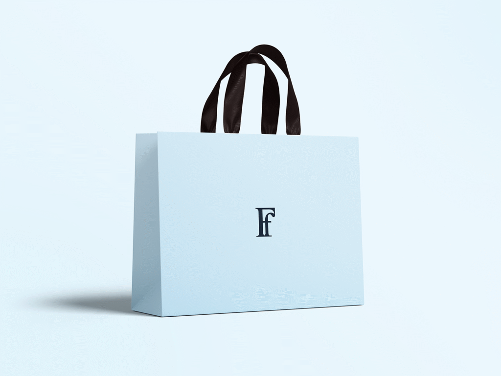 2. أكياس بلون سماوي خالص، تعتمد البساطة الراقية، وتحمل الشعار فقط بحجم مدروس في المنتصف.